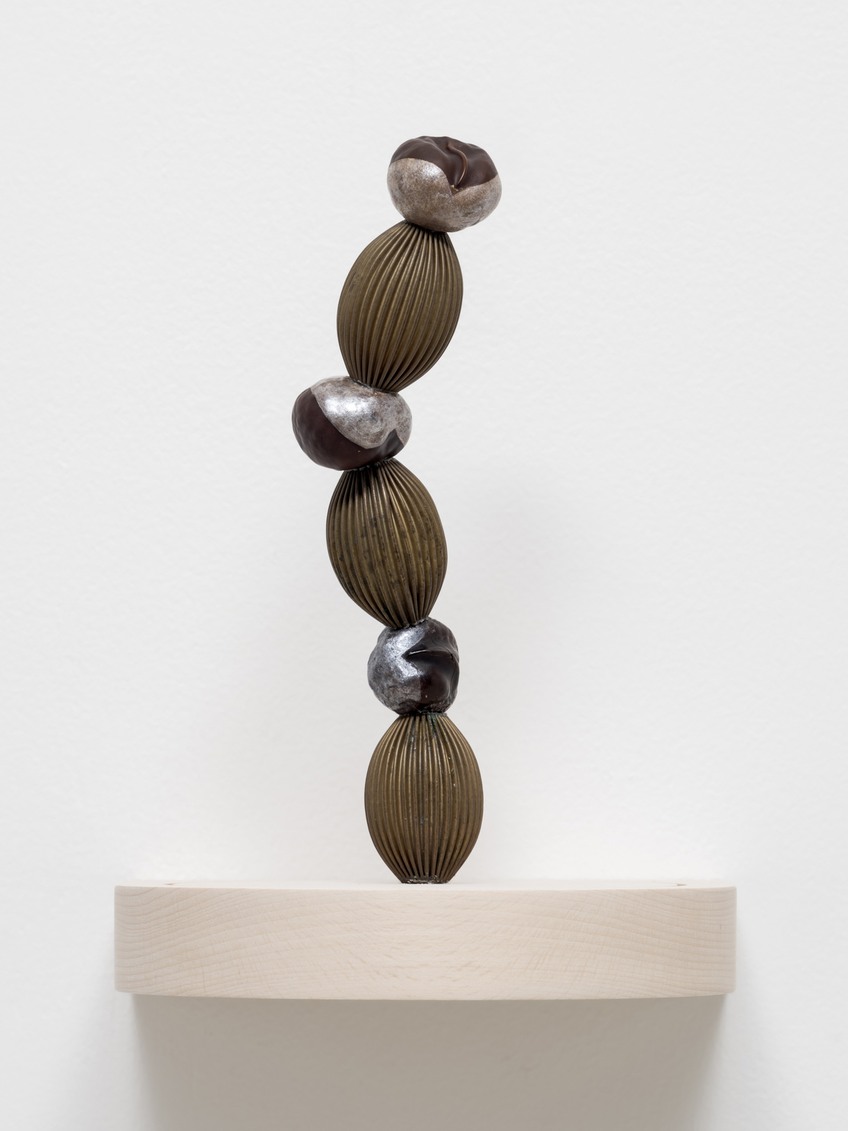 Dried horse chestnut, brass, 5x6x20cm