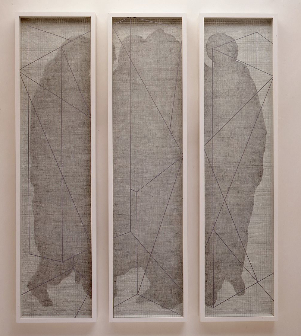 Graphite pencil on canvas, wire glass, 180x40x10cm(each, Set of 3)